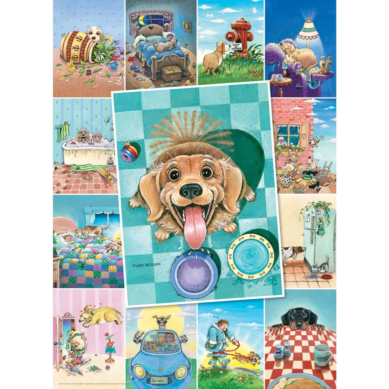 500 pieces. Bring the whole family together to assemble this fun photo collage capturing the excitement and activity in a dog’s day. Puzzle has extra-large pieces that are easier to grasp. 19 x 27″ (48 x 69cm).