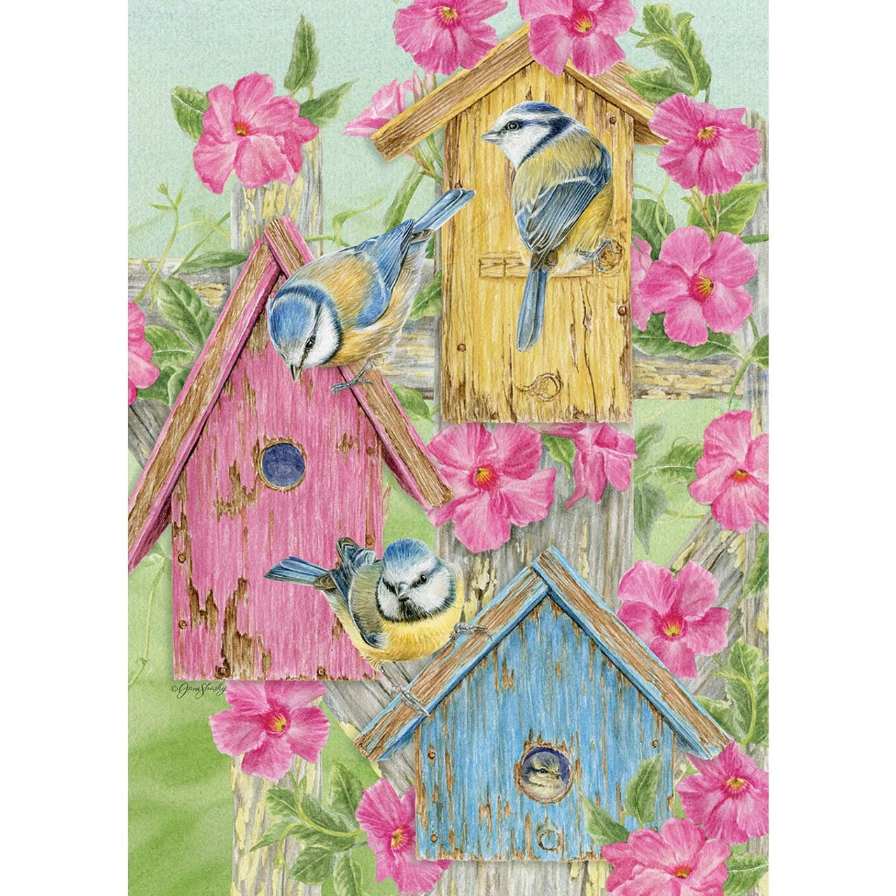 300 pieces. These birds welcome you to their home in this pretty jigsaw puzzle scene. 15 x 21″ (38 x 53cm).