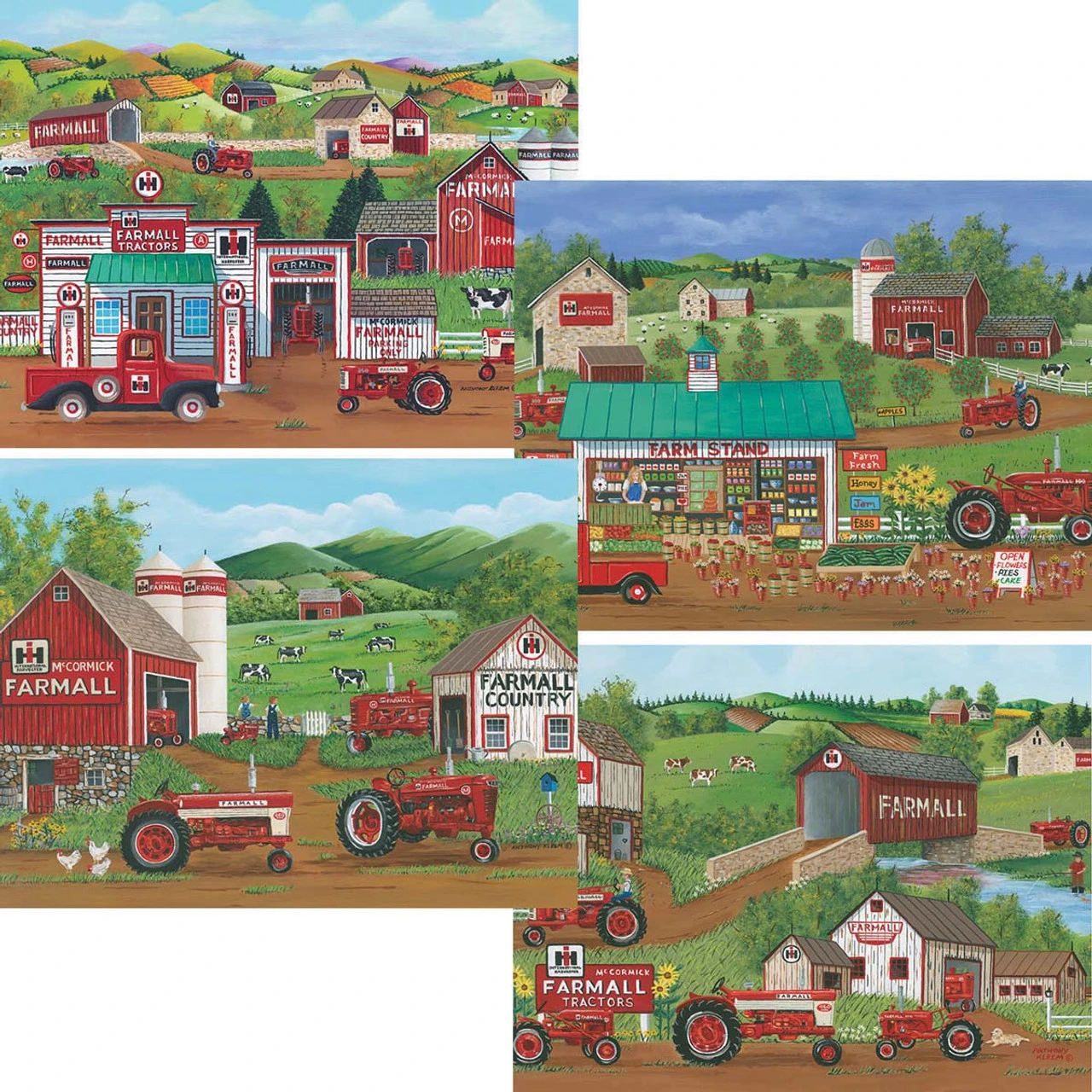 Relax after a long day on the tractor with a set of four 500-piece jigsaw puzzles that make folk art-style wall art when finished and framed. Set of four. 18 × 14″ (46 x 36cm).